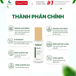 • Salicylic Acid (BHA) kết hợp tinh dầu tràm trà và chiết xuất vỏ cây liễu trắng: Tác dụng kháng khuẩn, kháng viêm ngăn ngừa mụn hiệu quả, ngăn chặn sự phát triển của vi khuẩn.